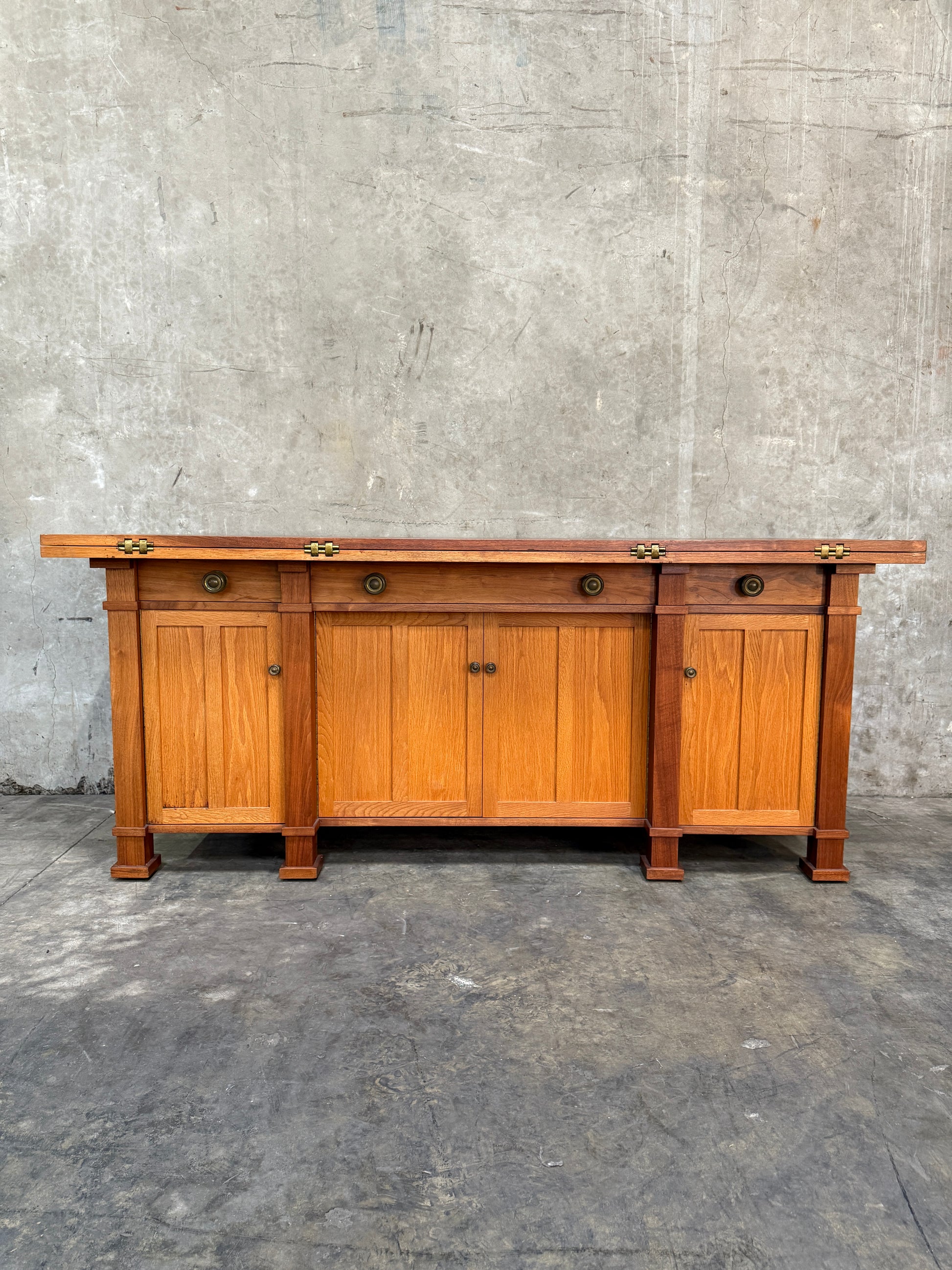 1970s Custom Handcrafted Arts & Crafts Revival Sideboard with Fold-Out Top and Lined Drawers – Brunner Cabinet Shop, San Francisco
