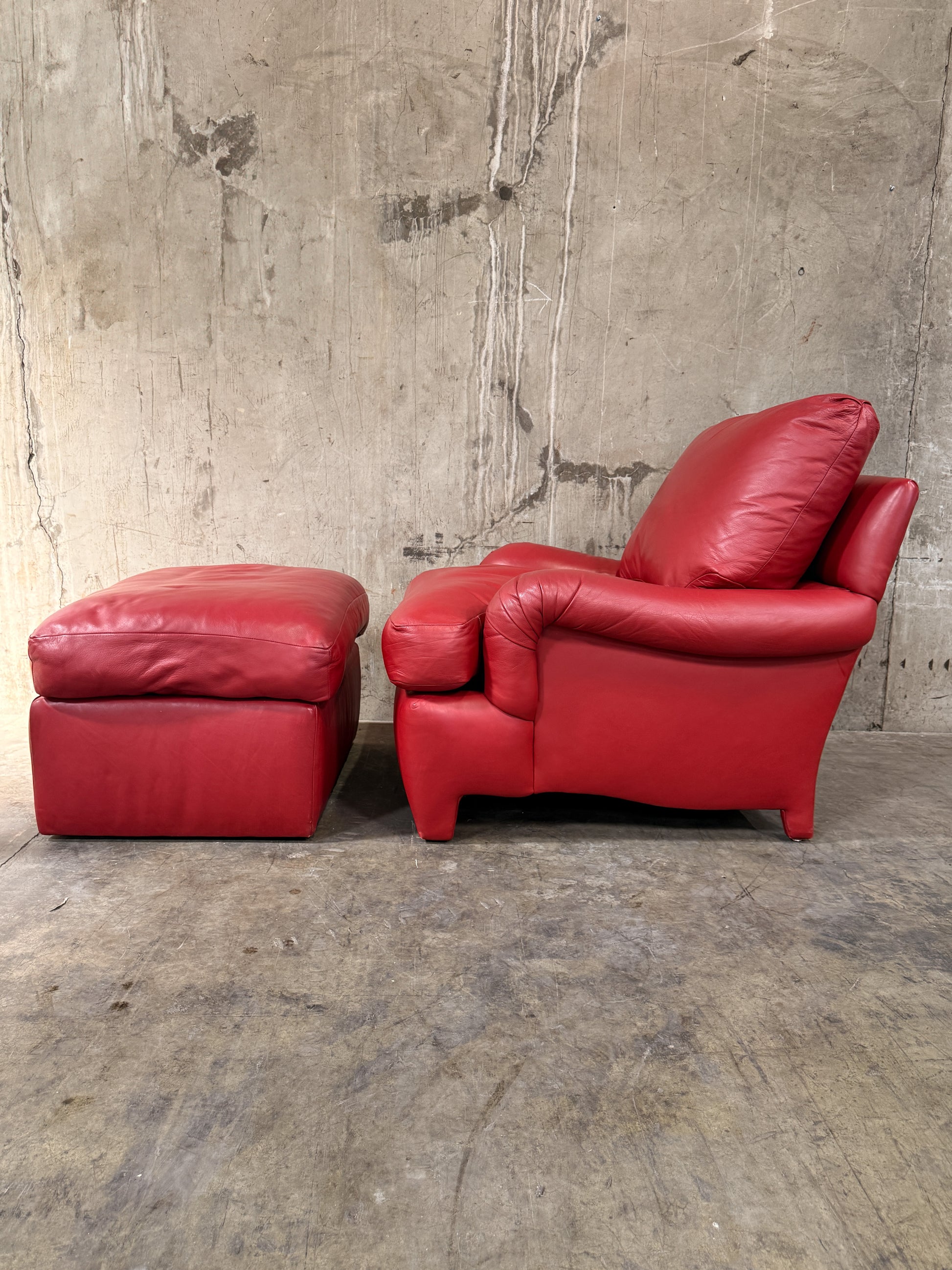 1970s Michael Taylor Red Leather Lounge Chair & Ottoman – Refurbished by Belmar Co. San Francisco