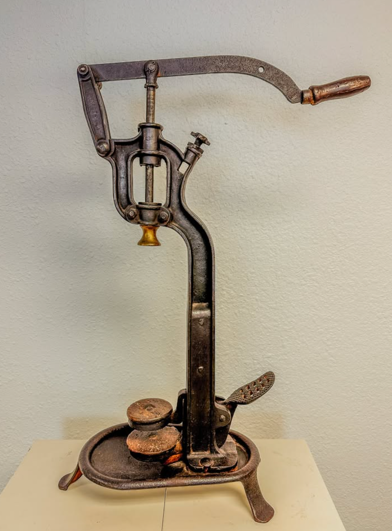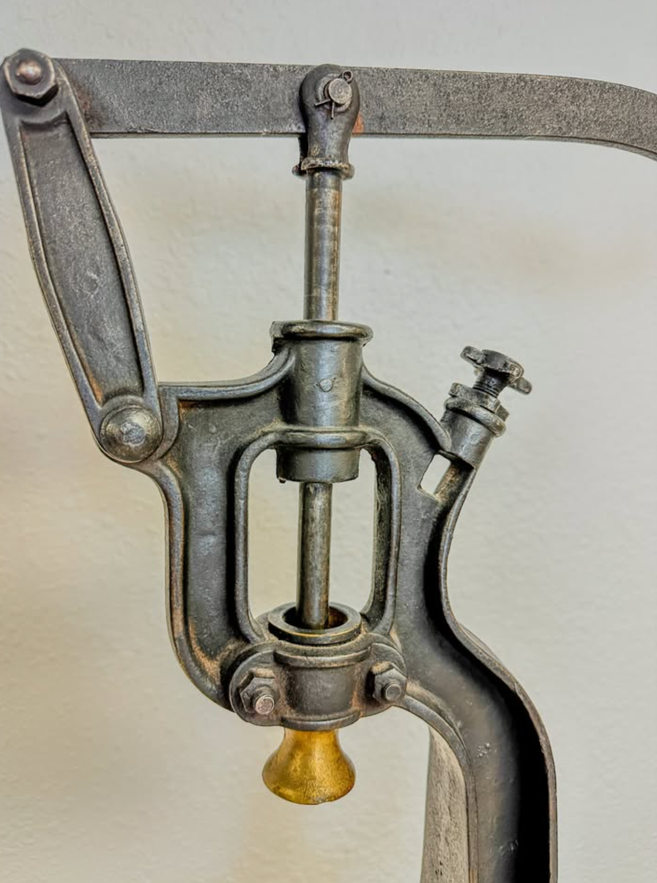 Excellent Vintage Condition: This piece has been very well preserved, showcasing a beautiful aged patina without significant damage or rust. The cast iron is sound, and the wood handle is intact. While its original functionality for corking bottles hasn't been recently tested (and it's primarily sold as a decorative antique), all visible parts appear to be present and intact. No maker's marks are visible.