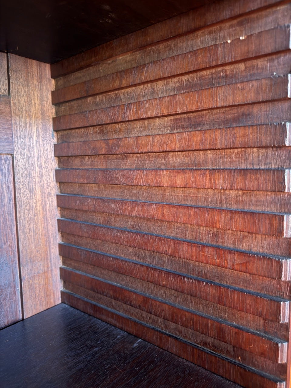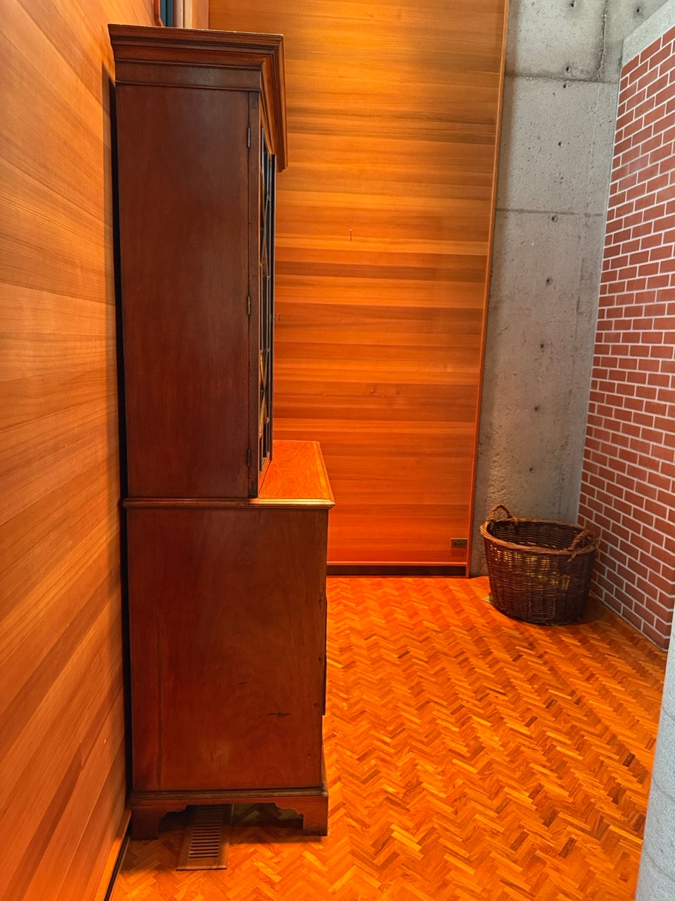 Dimensions: 91" high overall, 46.25" wide at base, 24" deep at base, 44" wide at top, 14.5" deep at top, 43" high lower chest section.