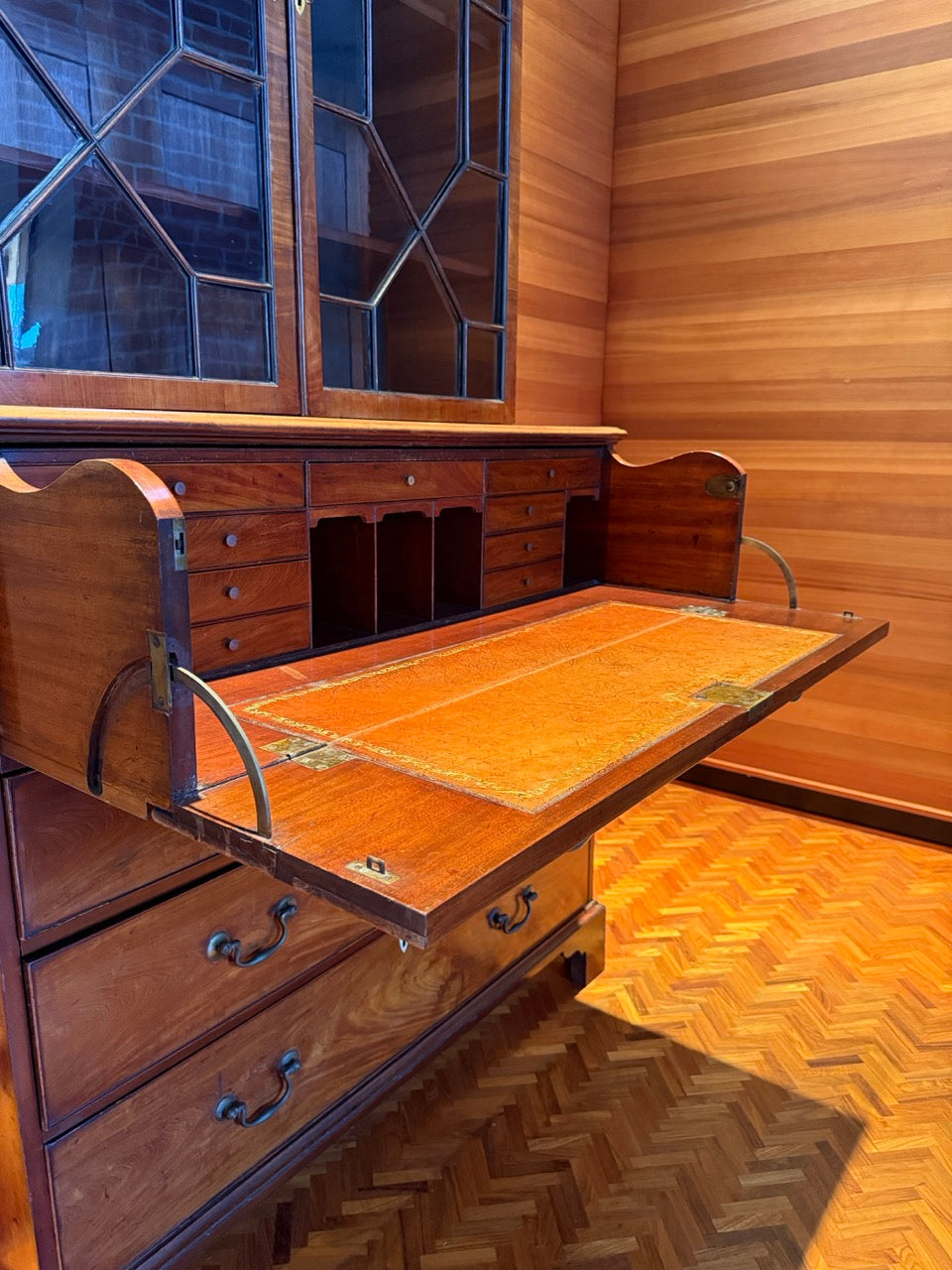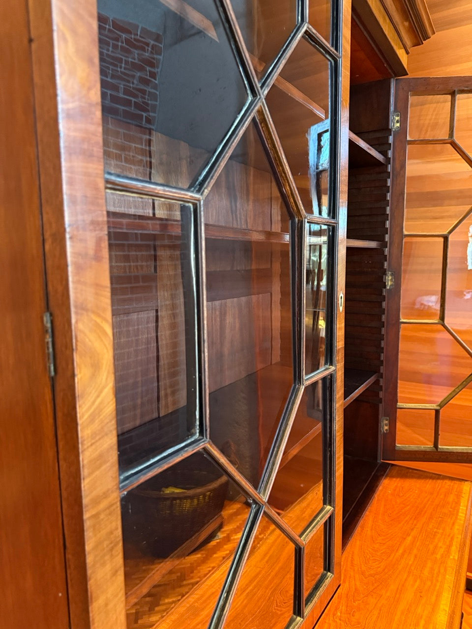 antique secretary desk, George III bookcase, mahogany bureau, glazed cabinet, Georgian furniture, English antique, period desk, vintage secretary hutch