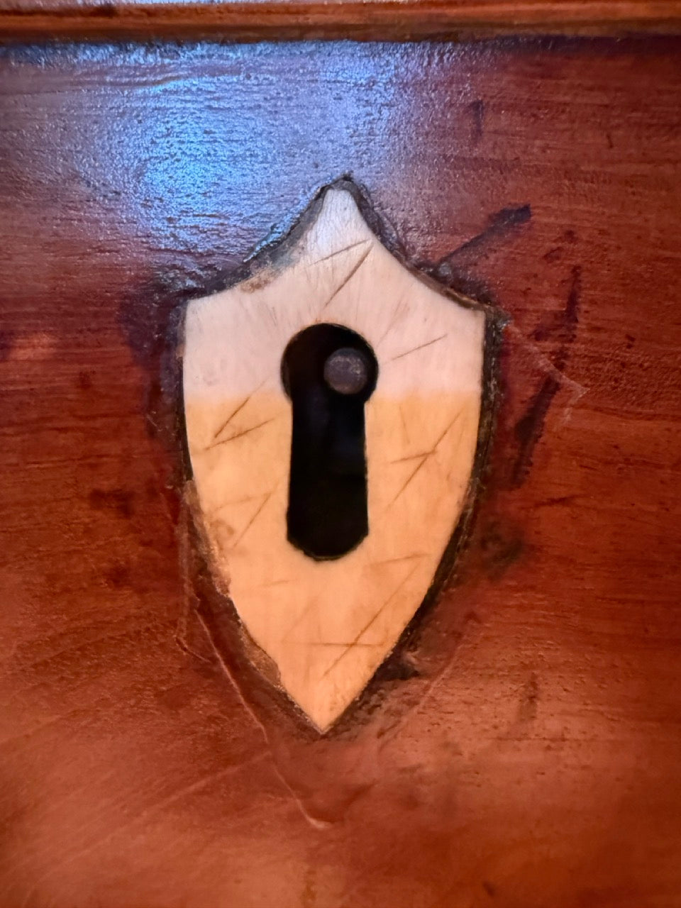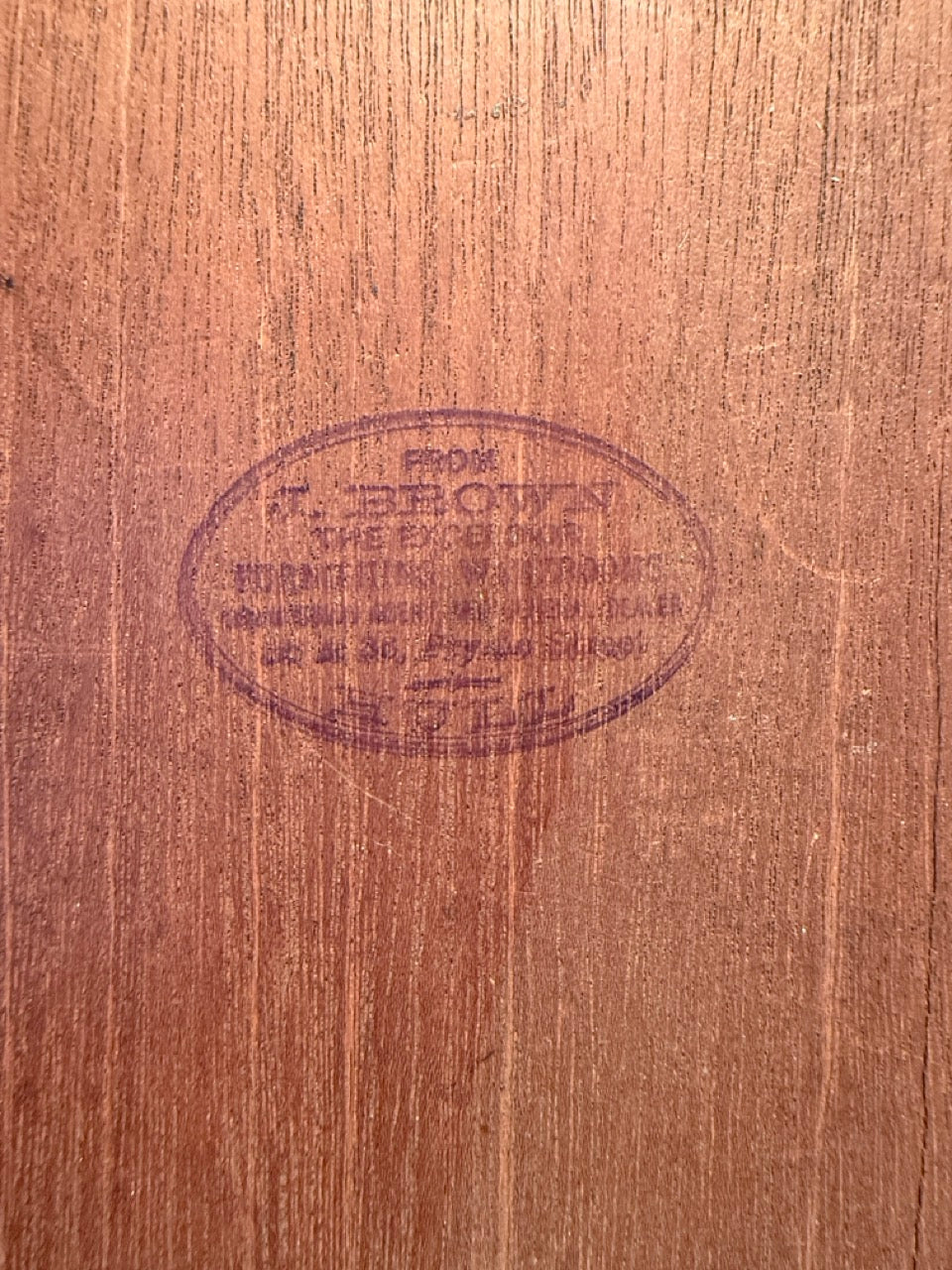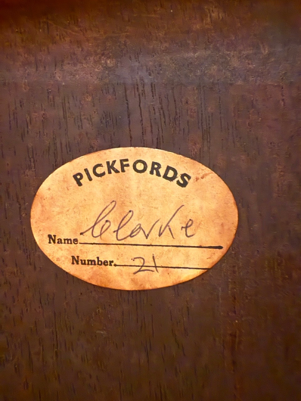 This piece displays beautiful hand craftsmanship with warm patina and classic proportions. A fine example of English design, likely dating late 18th to early 19th century, with a later Pickfords label indicating prior UK provenance.