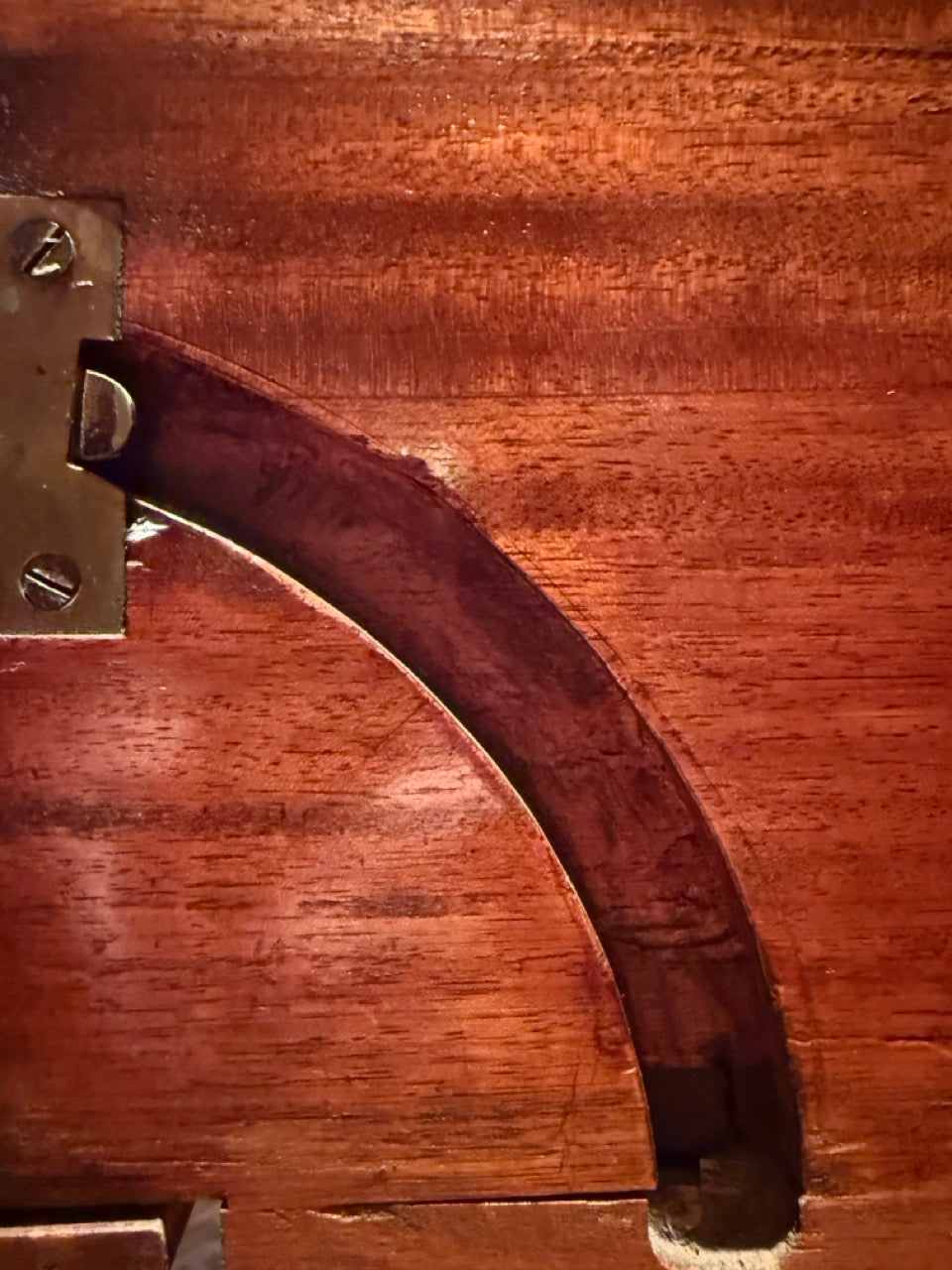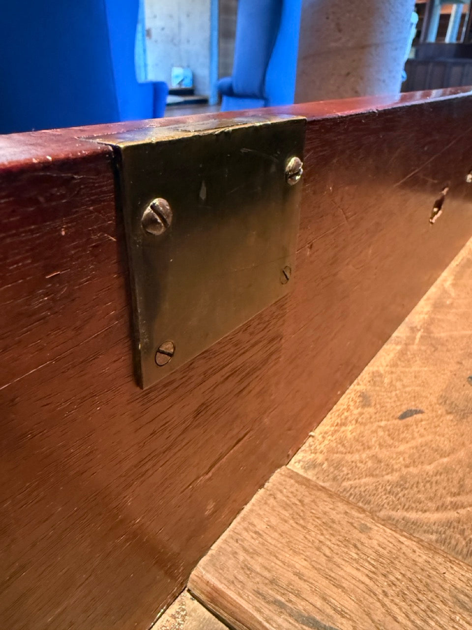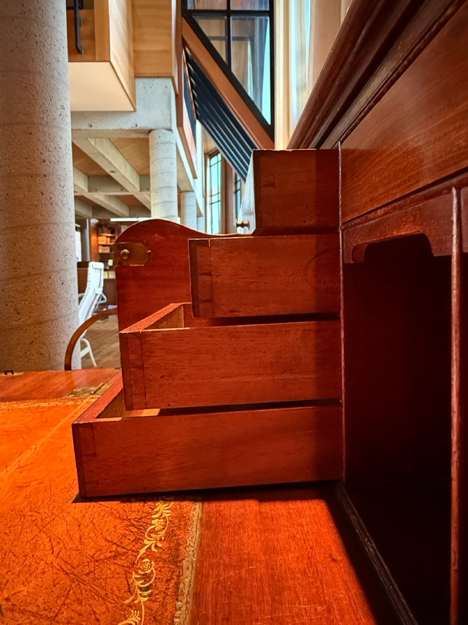 This piece displays beautiful hand craftsmanship with warm patina and classic proportions. A fine example of English design, likely dating late 18th to early 19th century, with a later Pickfords label indicating prior UK provenance.