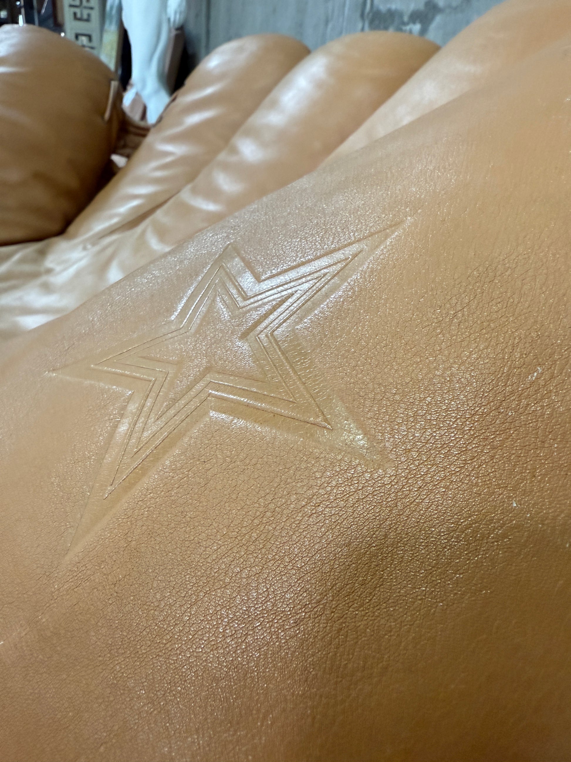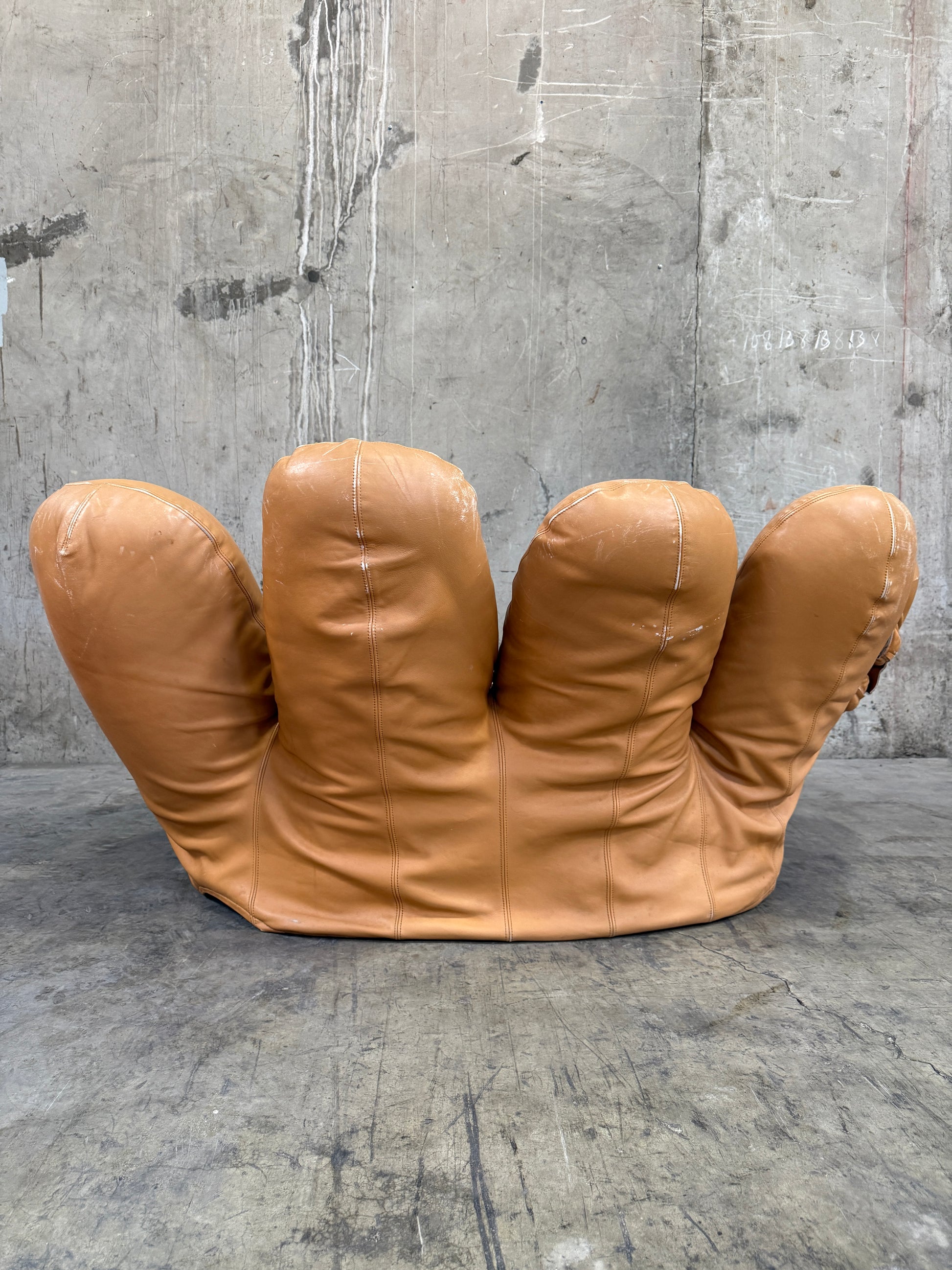 Authentic vintage Joe Chair, designed in the 1970s by Jonathan de Pas, Donato D’Urbino, and Paolo Lomazzi for Poltronova. This iconic oversized leather baseball glove chair was named in tribute to Joe DiMaggio, merging Italian Radical Design with American sports culture.