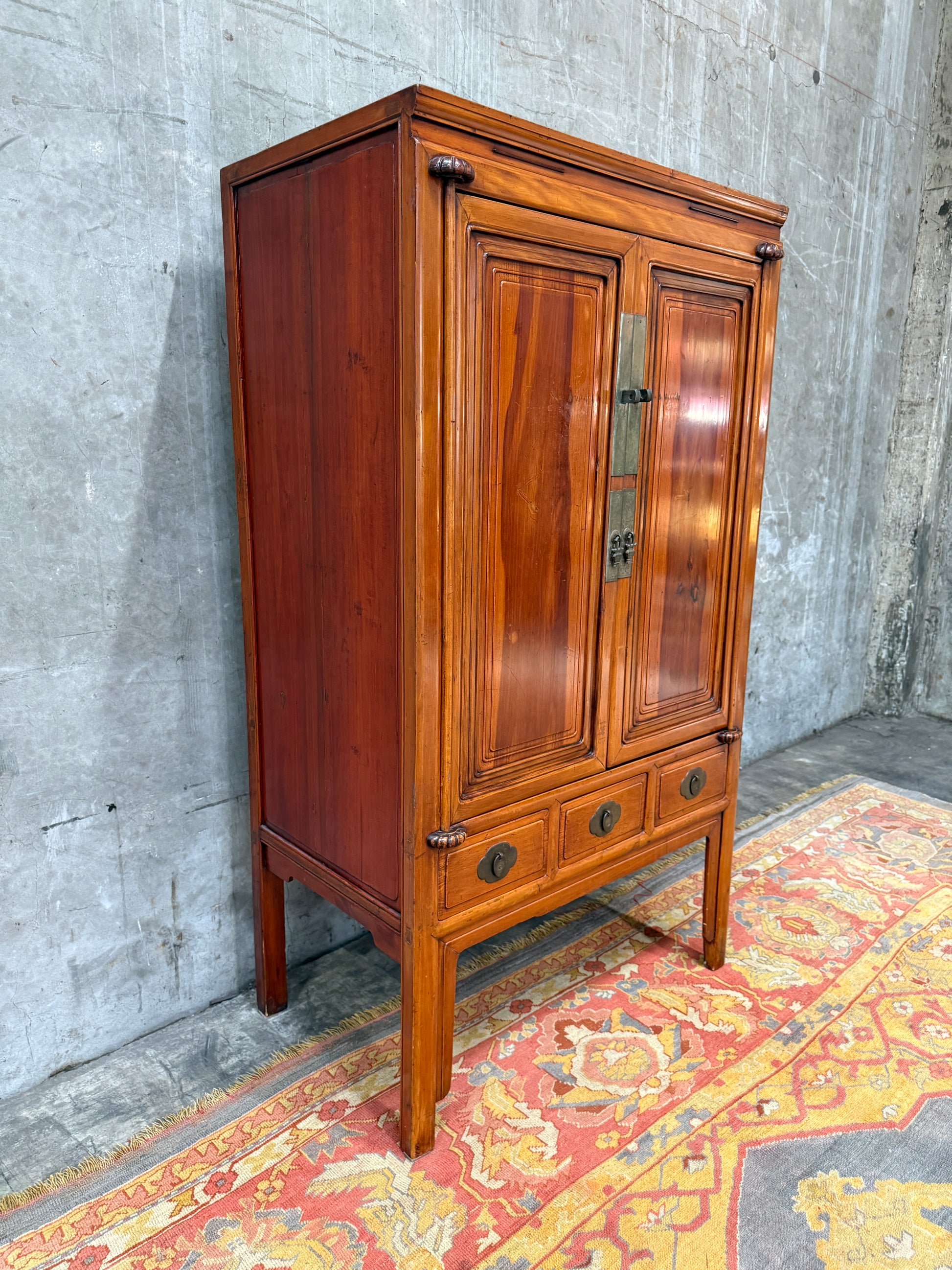 Chinese Qing Dynasty, late 19th century cabinet, Ningbo elm cabinet, Chinese wardrobe, antique armoire, Asian antiques, elmwood furniture, brass hardware, Qing furniture, statement storage cabinet, antique Chinese furniture