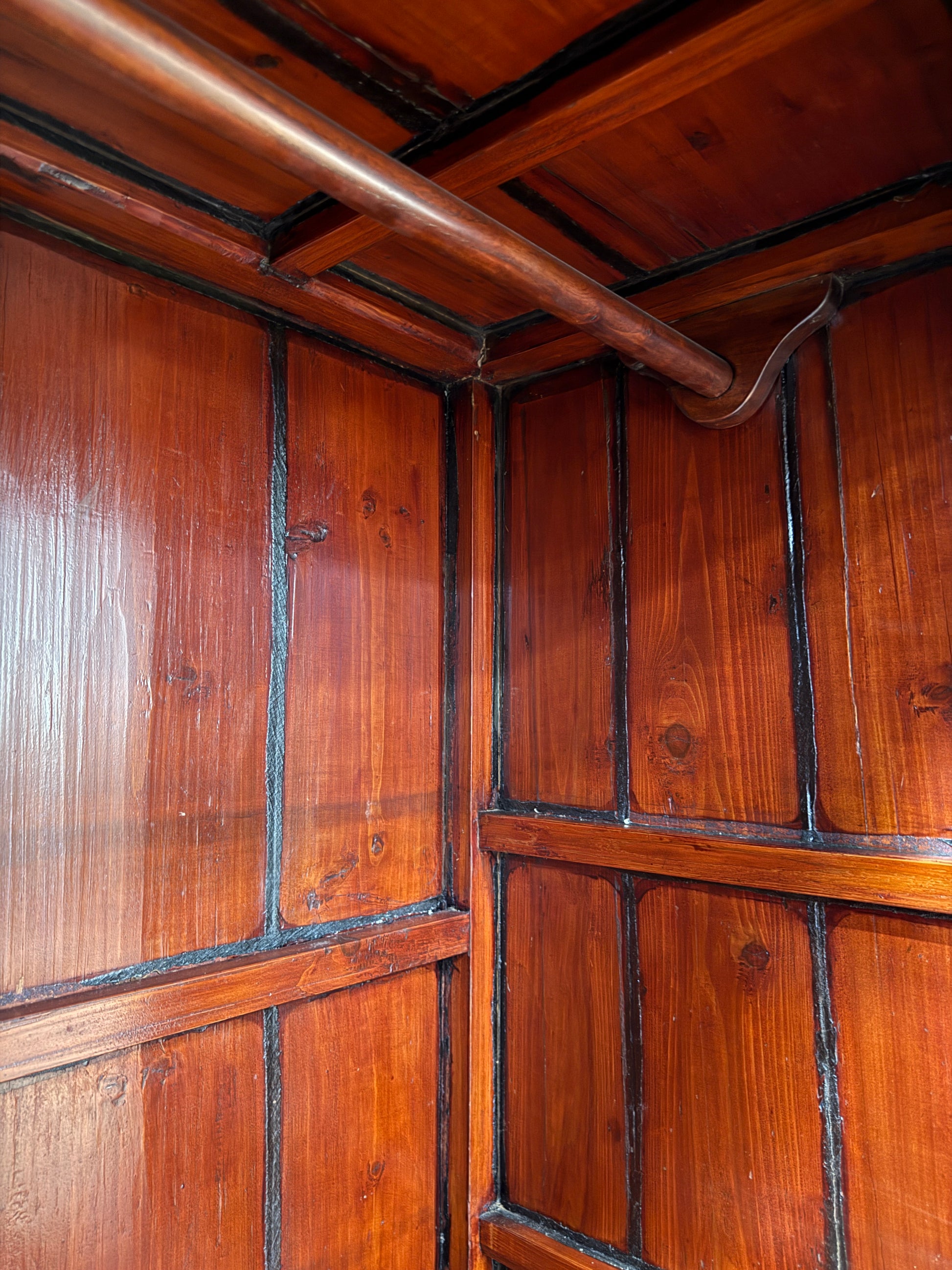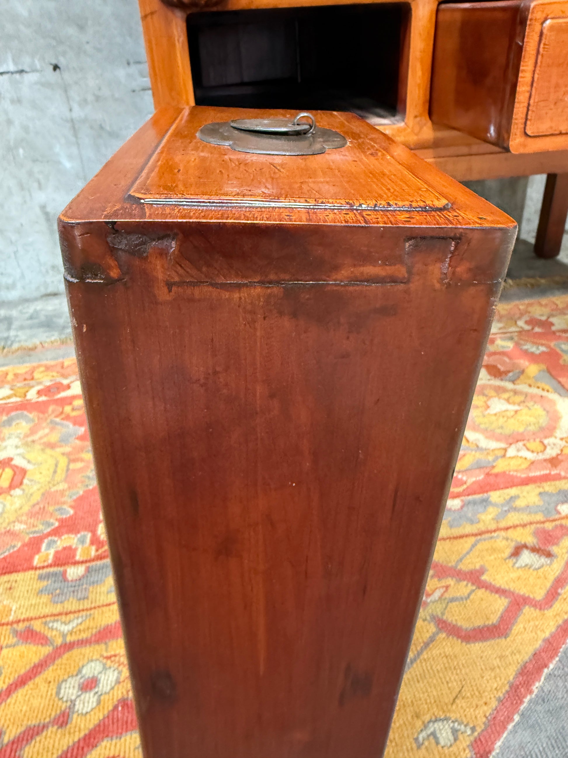 The interior offers 38 inches of garment height for hanging storage, making it equally functional as a wardrobe, armoire, or statement storage piece. Its design highlights the restrained elegance of late Qing furniture: rounded posts, molded panels, subtle carved accents, and traditional joinery that has endured for over a century.