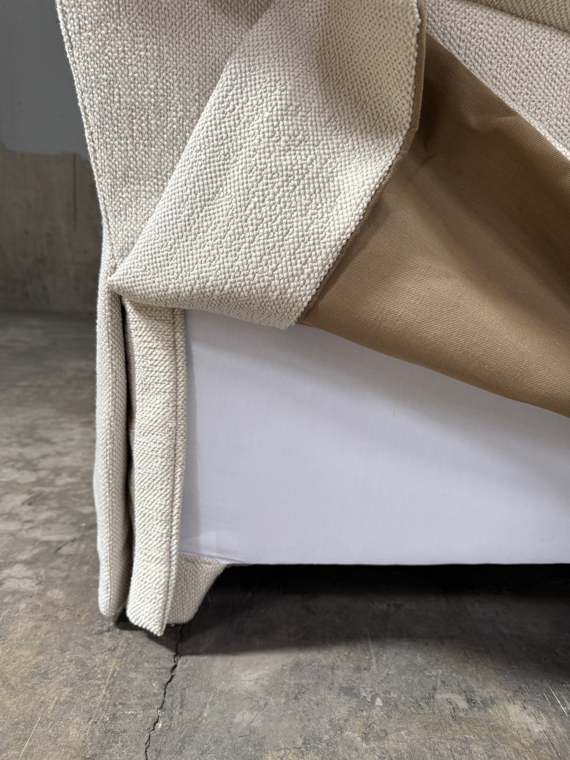 sofa, custom designer sofa, white sofa, rolled arm sofa, skirted sofa, luxury sofa, upholstered sofa, high-end sofa, contemporary sofa, Restoration Hardware sofa, transitional sofa, modern classic sofa