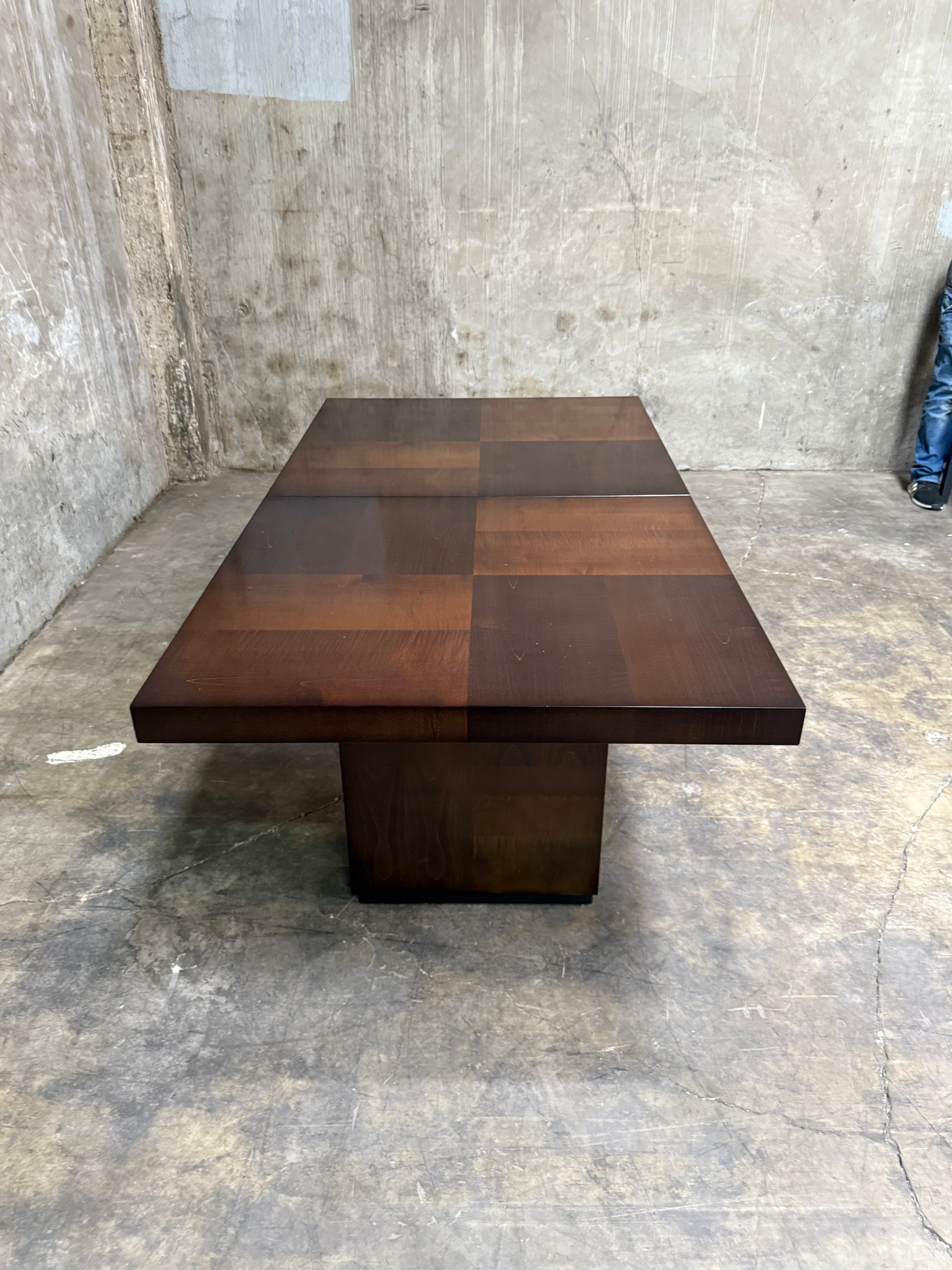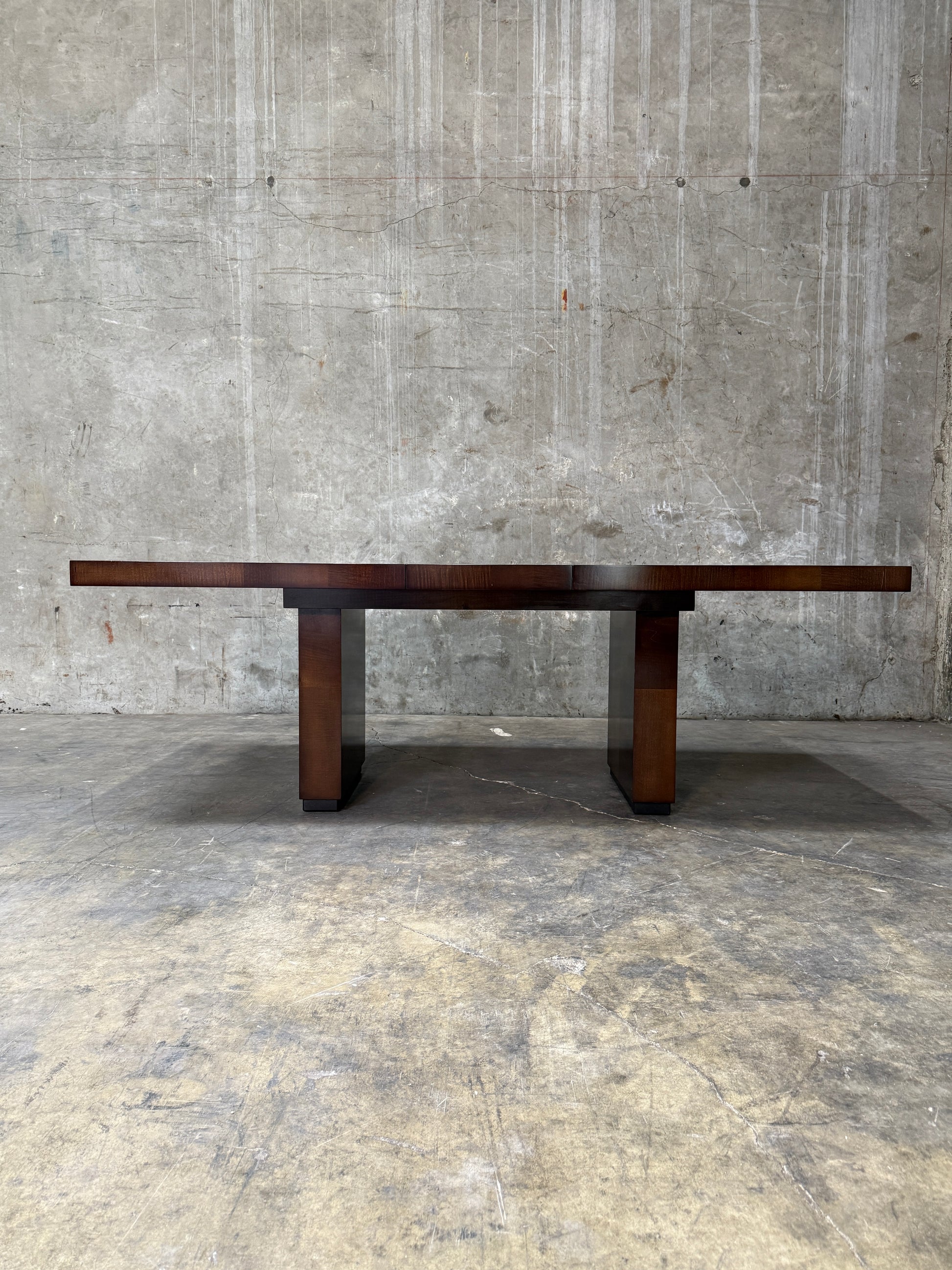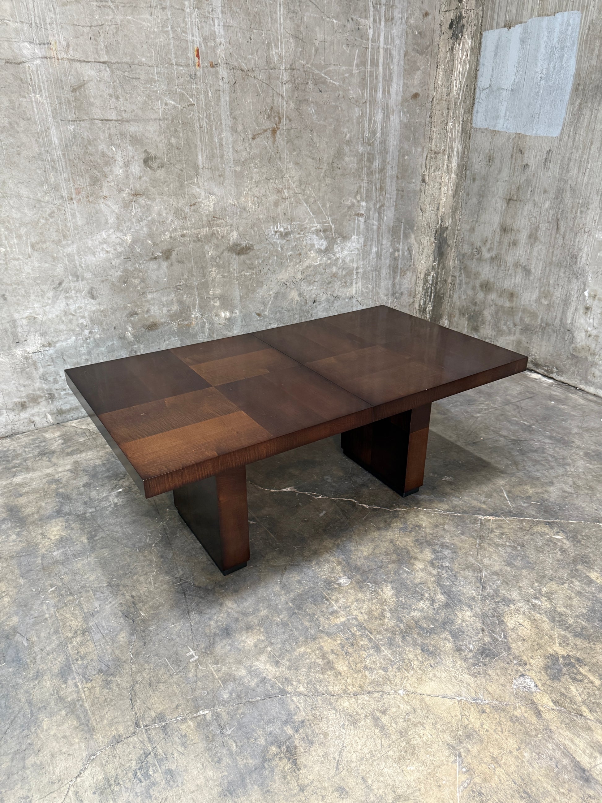Excellent Overall Condition with Minor Surface Wear: This table has been meticulously cared for and is in superb shape. The high-gloss sycamore finish remains largely brilliant, with some minor surface wear consistent with careful use over time. These subtle imperfections are visible in the provided photos and do not detract from the table's overall luxurious appearance. The extension mechanism works smoothly, and the table is perfectly sturdy.