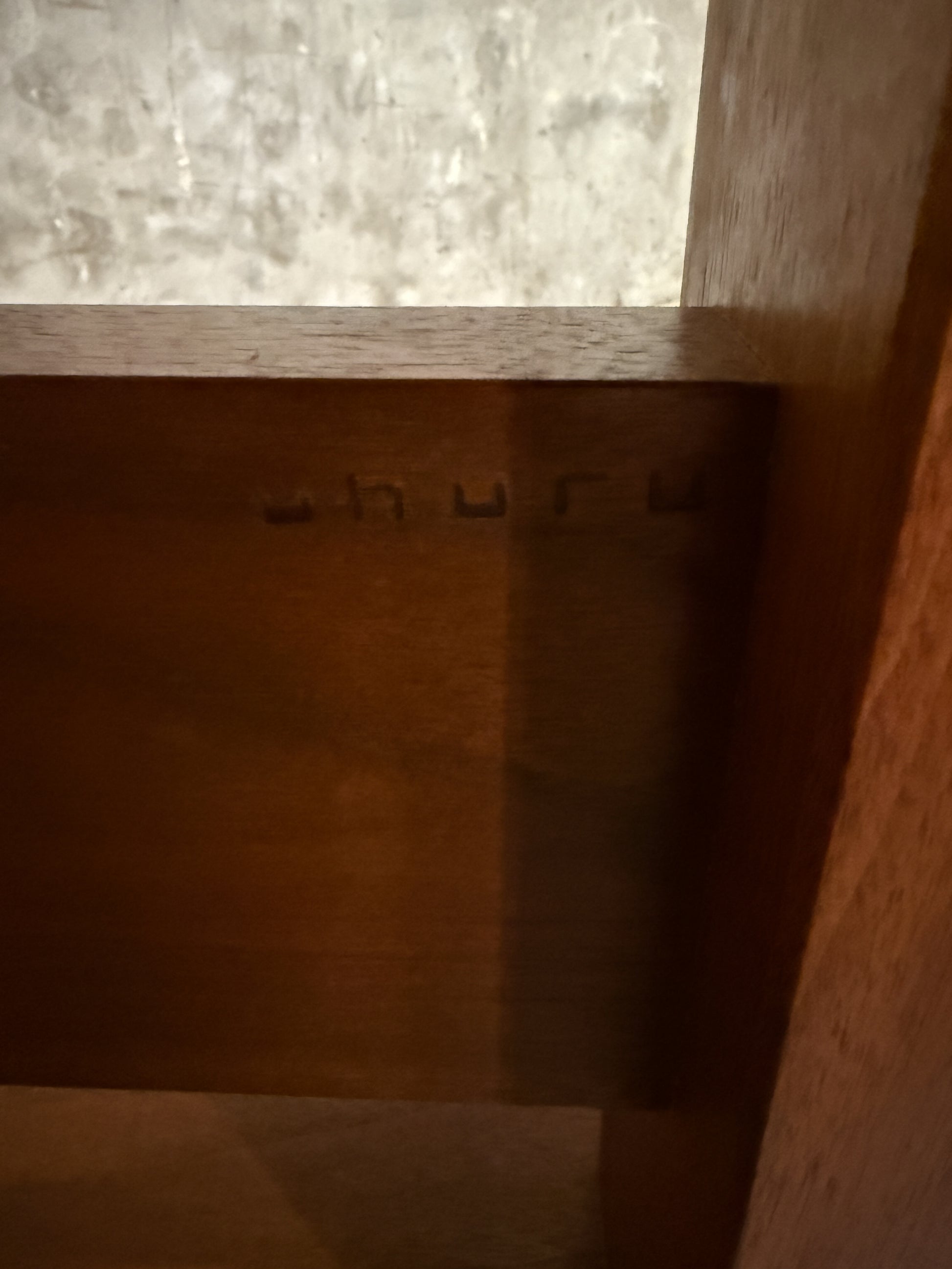 A striking custom high-top table by Uhuru Design, hand-built in Brooklyn, New York, for George Clooney’s Studio City residence in 2010. The table reflects Uhuru’s signature fusion of architectural form and artisanal craftsmanship — showcasing their mastery in solid walnut construction and joinery.